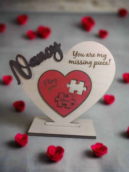 Valentine's Day Custom Engraved Wood Heart Display with Name